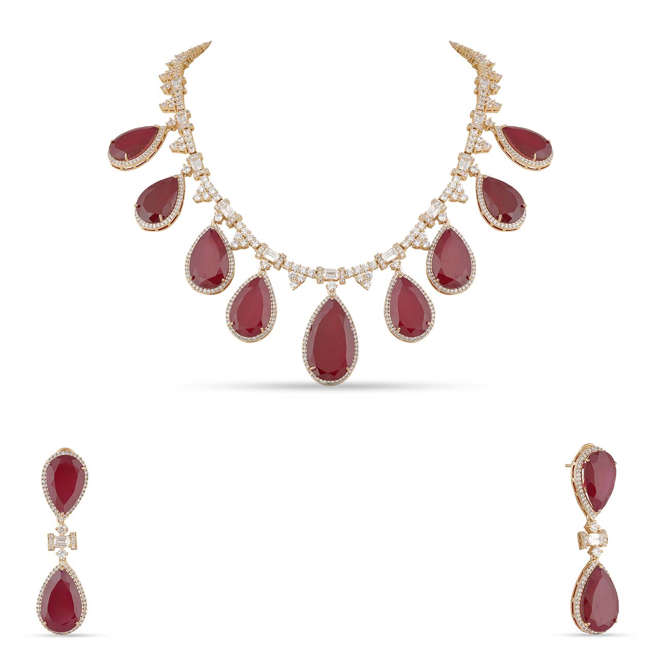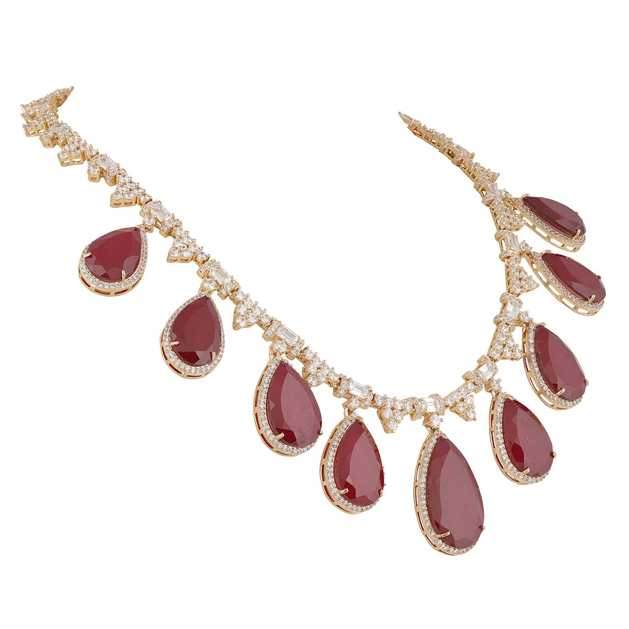Love, love, love this Afiyah necklace set! Perfect for an elegant evening out, this shining red stone and American diamond necklace is sure to get you cocktail ready in no time.