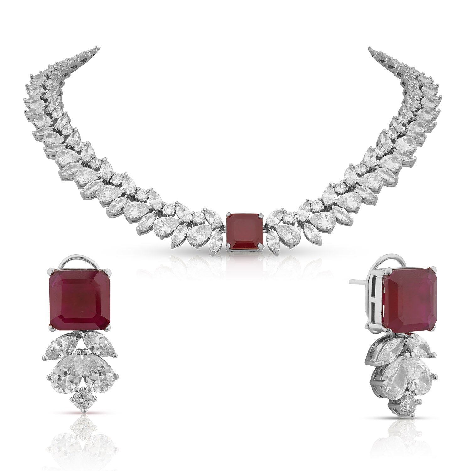 MATERIAL: Rhodium plated metal alloy , AAA CZ, Imitation ruby stones.