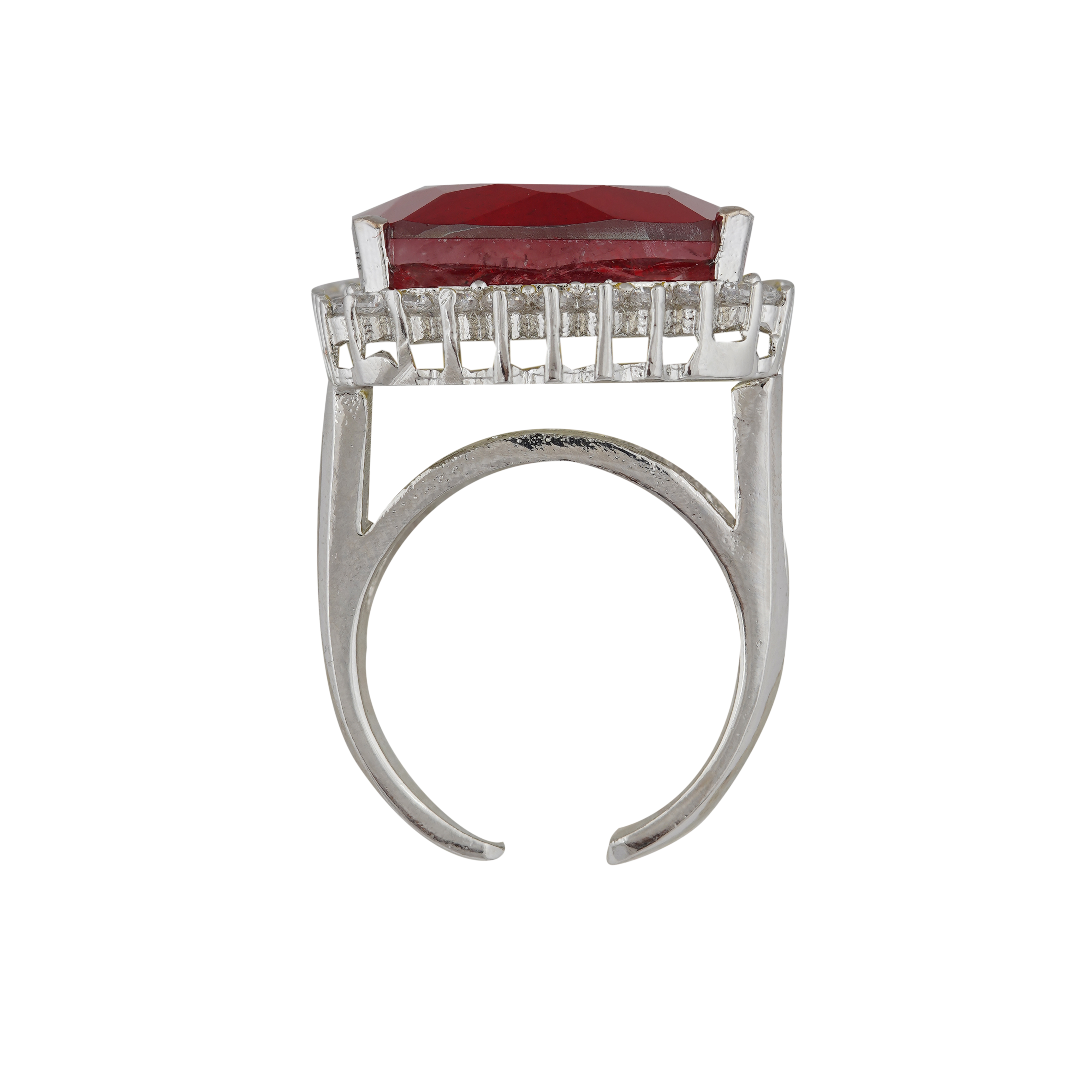 Its bold red hue is so pure and fierce, it's as if the essence of fire has been captured and encased in this stunning American Diamond Ring.