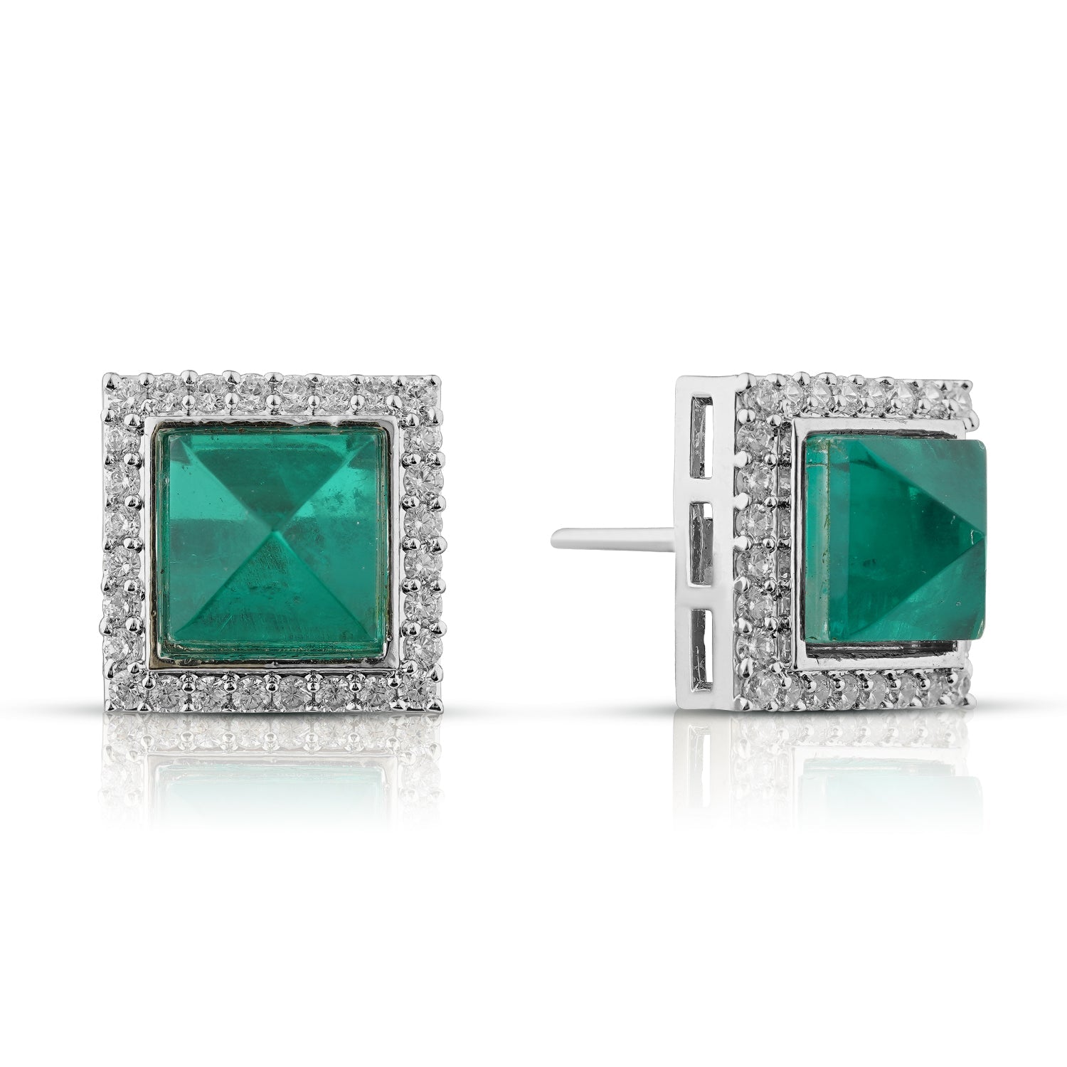 Paired with matching square studs, this piece carries an architectural clarity softened by its sparkle — a statement of elegance and inner power, made for evenings where presence speaks louder than words.