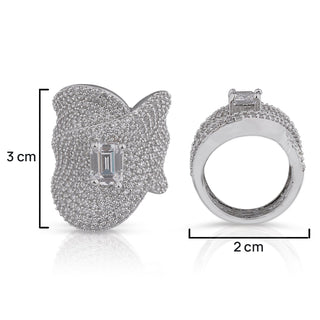 Cubic Zirconia Diamond Ring with measurements in cm. 2.5cm by 1.5cm.