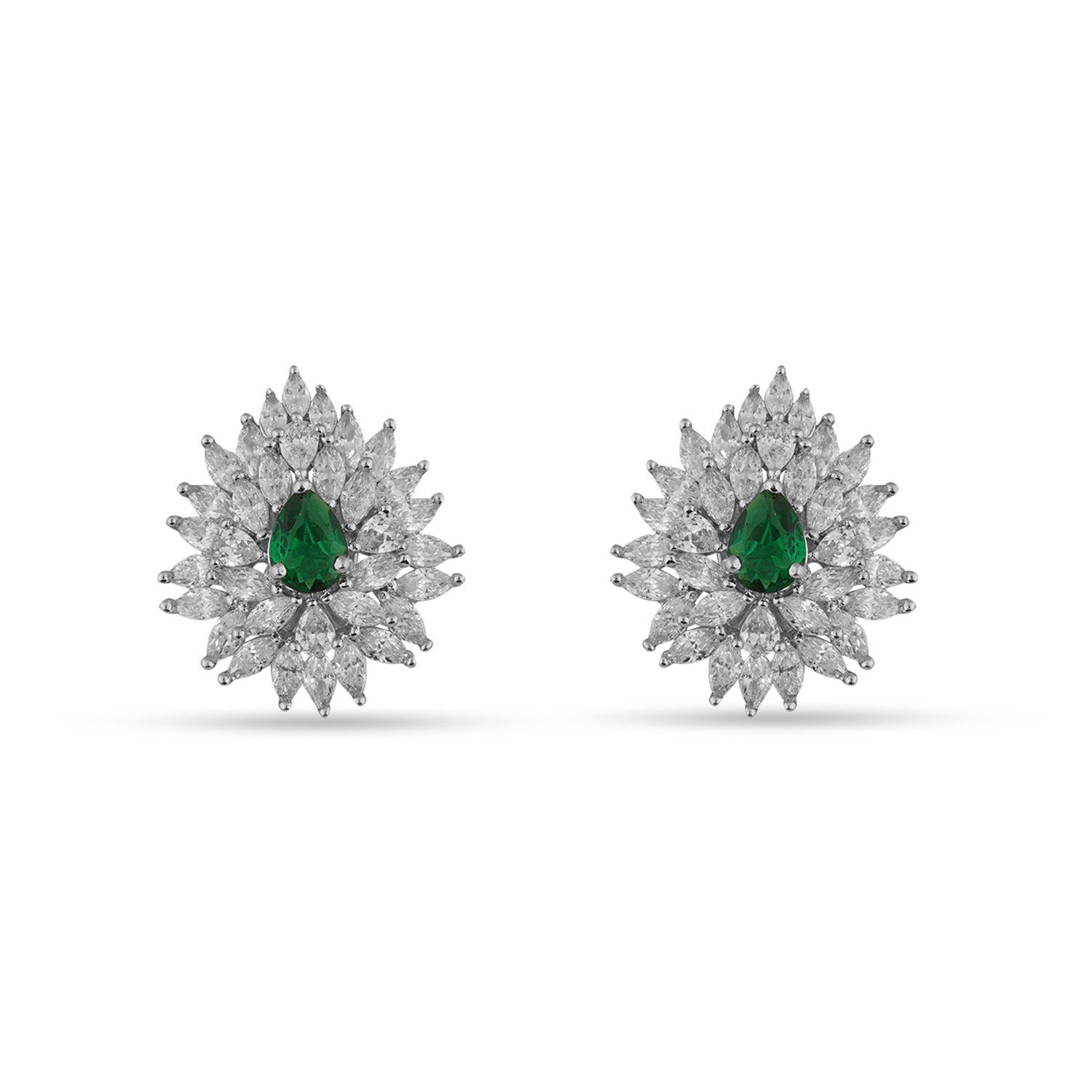 MATERIAL: Rhodium plated metal alloy, AAA CZ, Emerald Green stone.