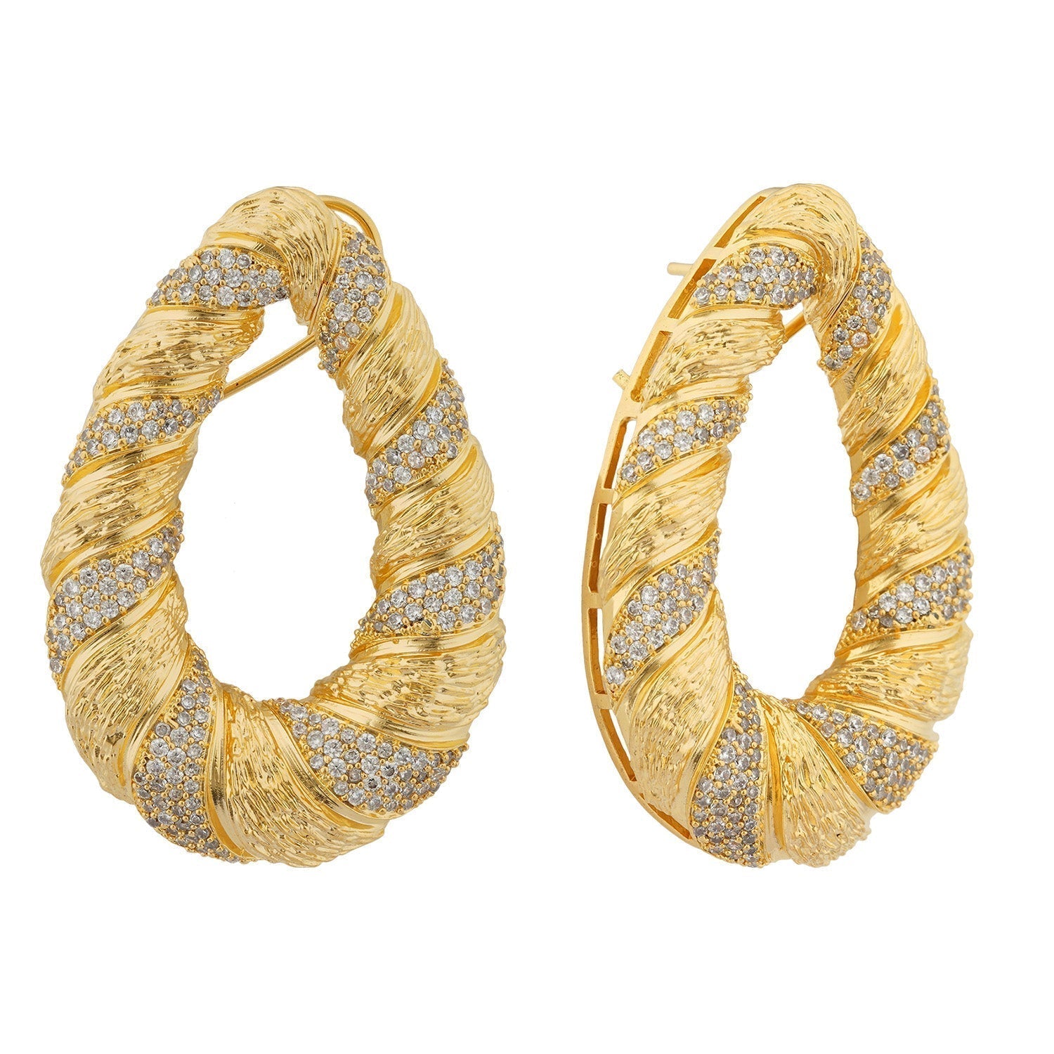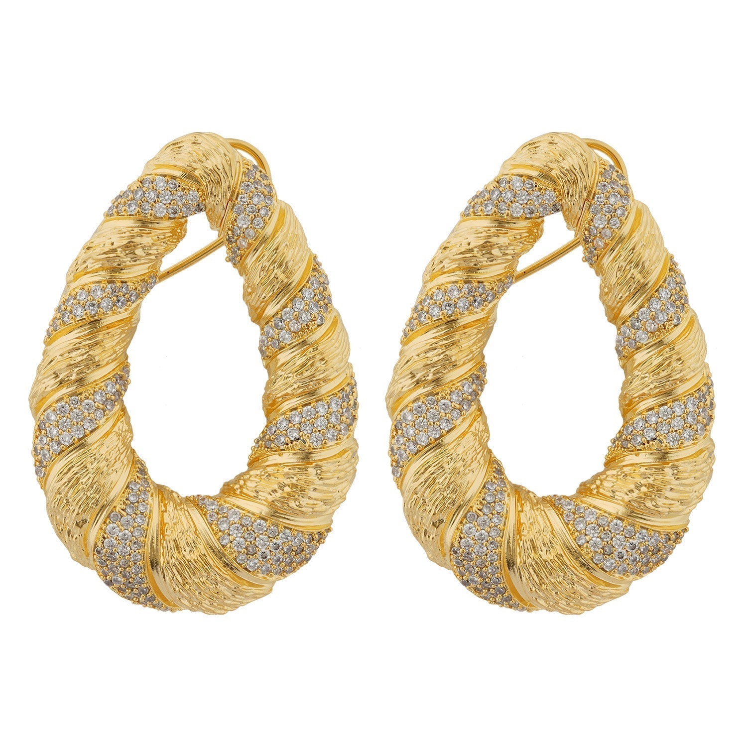 Make a statement with the Sienna Swirls Danglers. Their elegant twisted design and crystal accents offer a perfect blend of modern style and timeless sophistication. Lightweight and versatile, these earrings are ideal for adding a touch of glamour to any outfit.