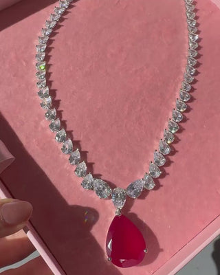 Zyva - Ruby Red Pendant & CZ Necklace Set