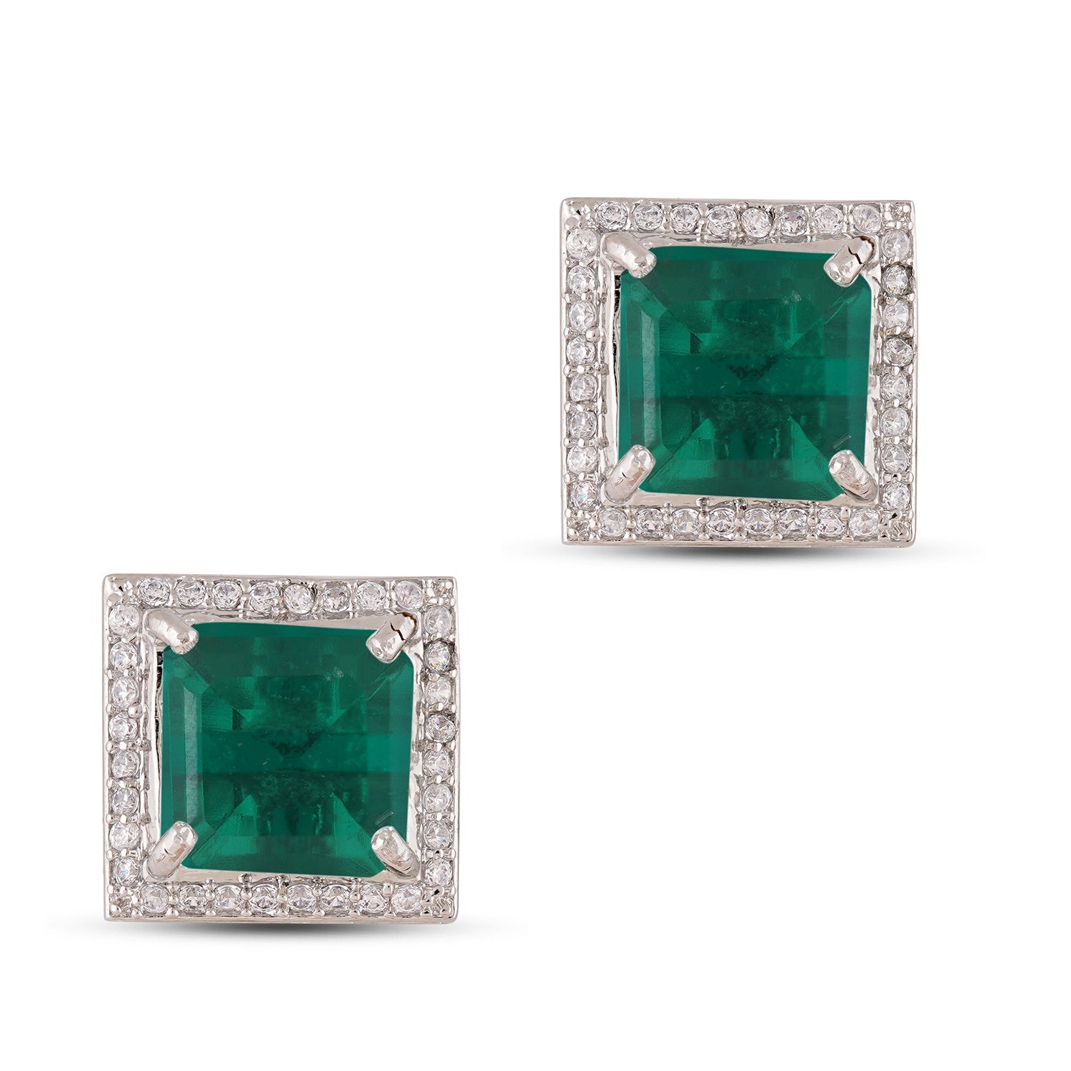 MATERIAL: Rhodium plated brass metal, doublet stone, cubic zirconia.