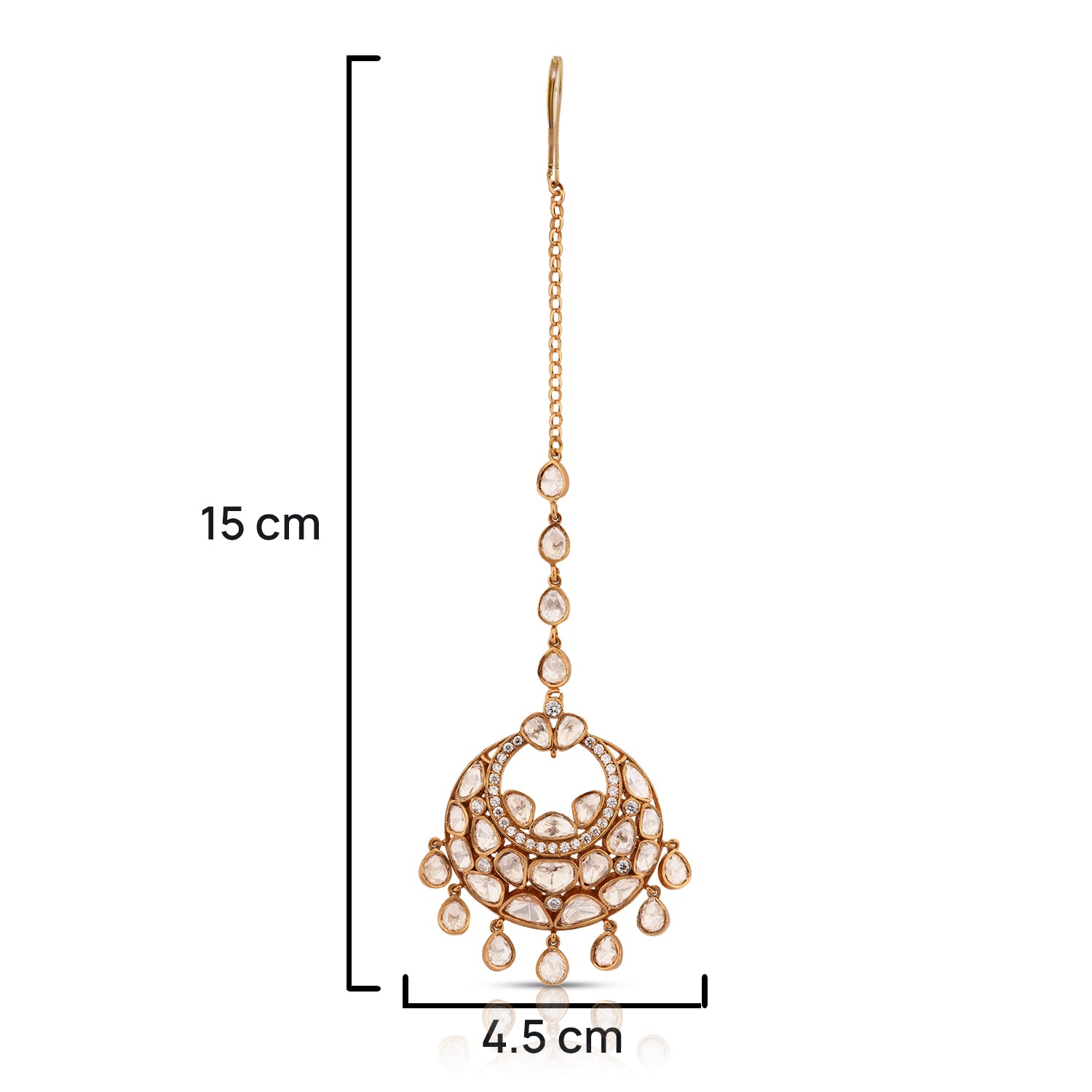 Elevate your festive look with Mckenzie's traditional polki maang tikka. Let the dazzling polki stones add a touch of elegance and grace to your outfit. Perfect for any special occasion, this maang tikka is sure to make you stand out.