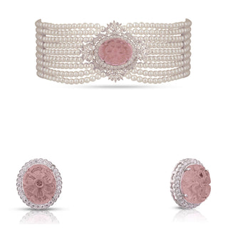 Angelica - Pink Carved Doublet & Pearl Choker