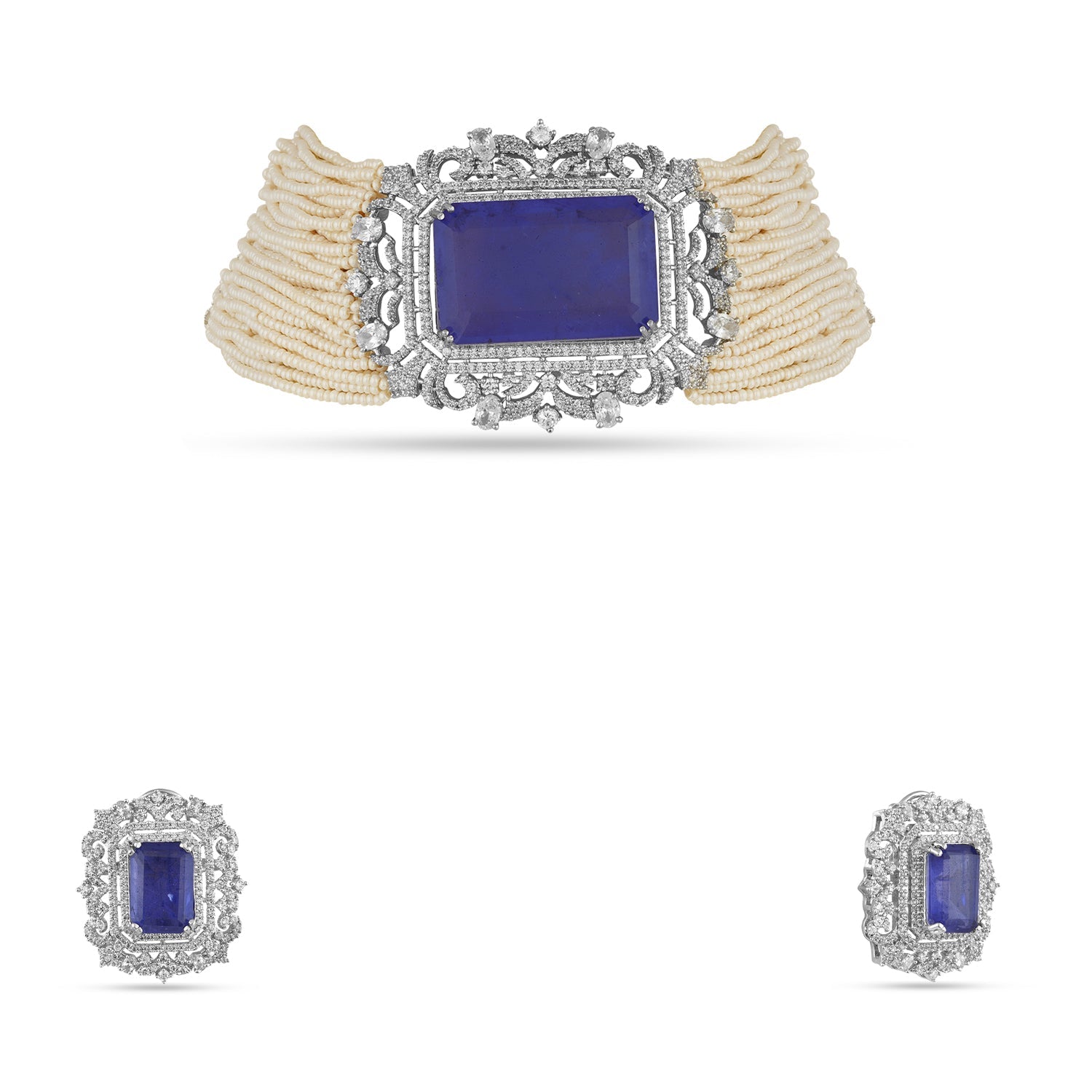 Introducing Elyanna, the ultimate choker set for those who love to make a statement. With Blue doublet stones and pearls, this set will elevate any outfit and have you feeling glamorous. Perfect for any occasion!
