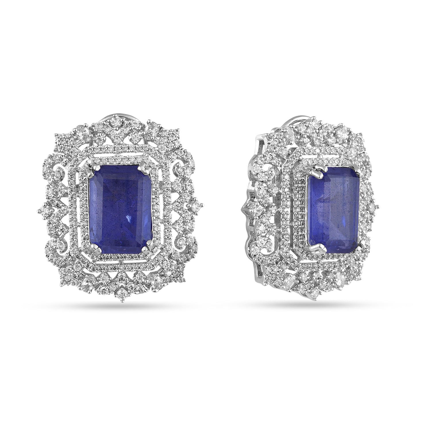 MATERIAL: Silver plated brass metal, Blue Doublet stone, AAA CZ.
