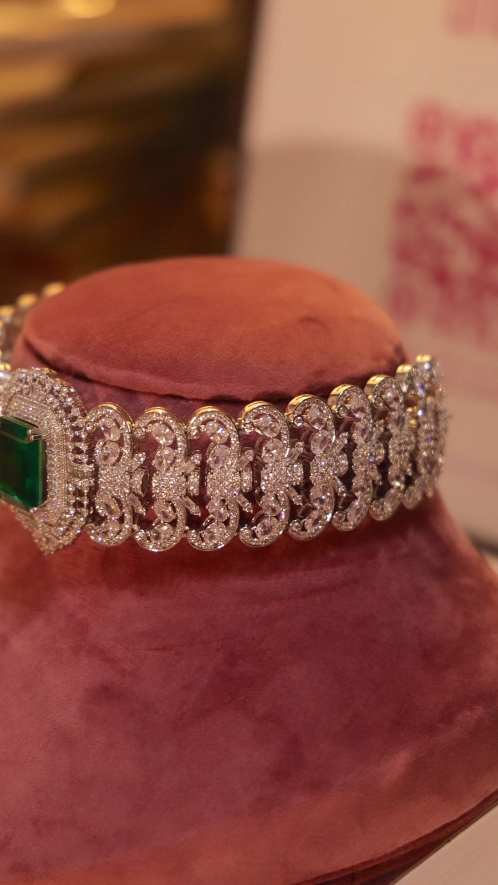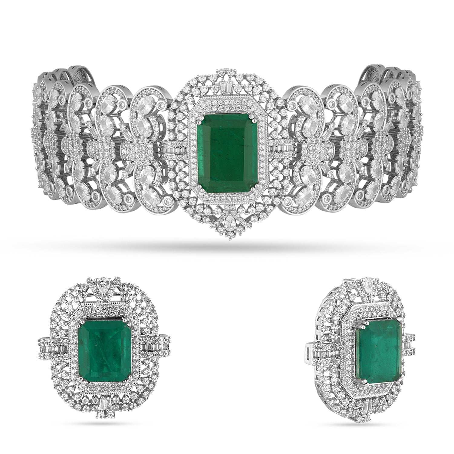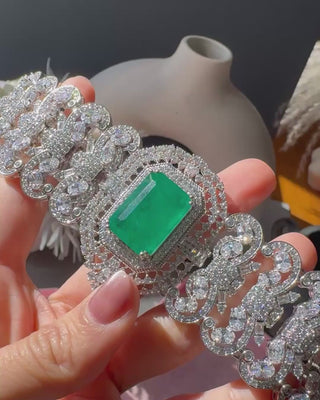Unleash your inner empress with Zeina, the stunning emerald green stone CZ choker set. Make a bold statement with this regal accessory, featuring a captivating green stone and sparkling CZ stones.